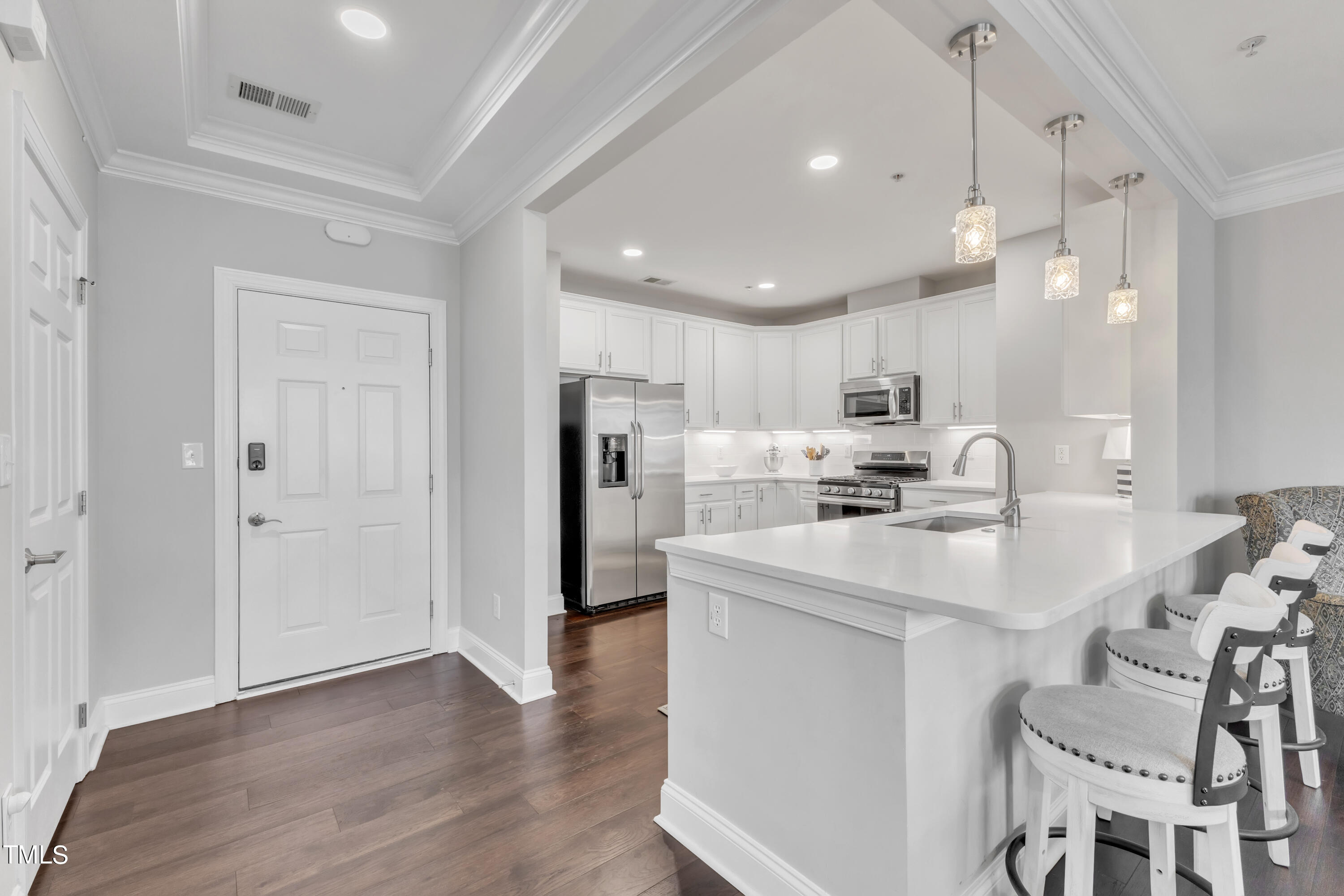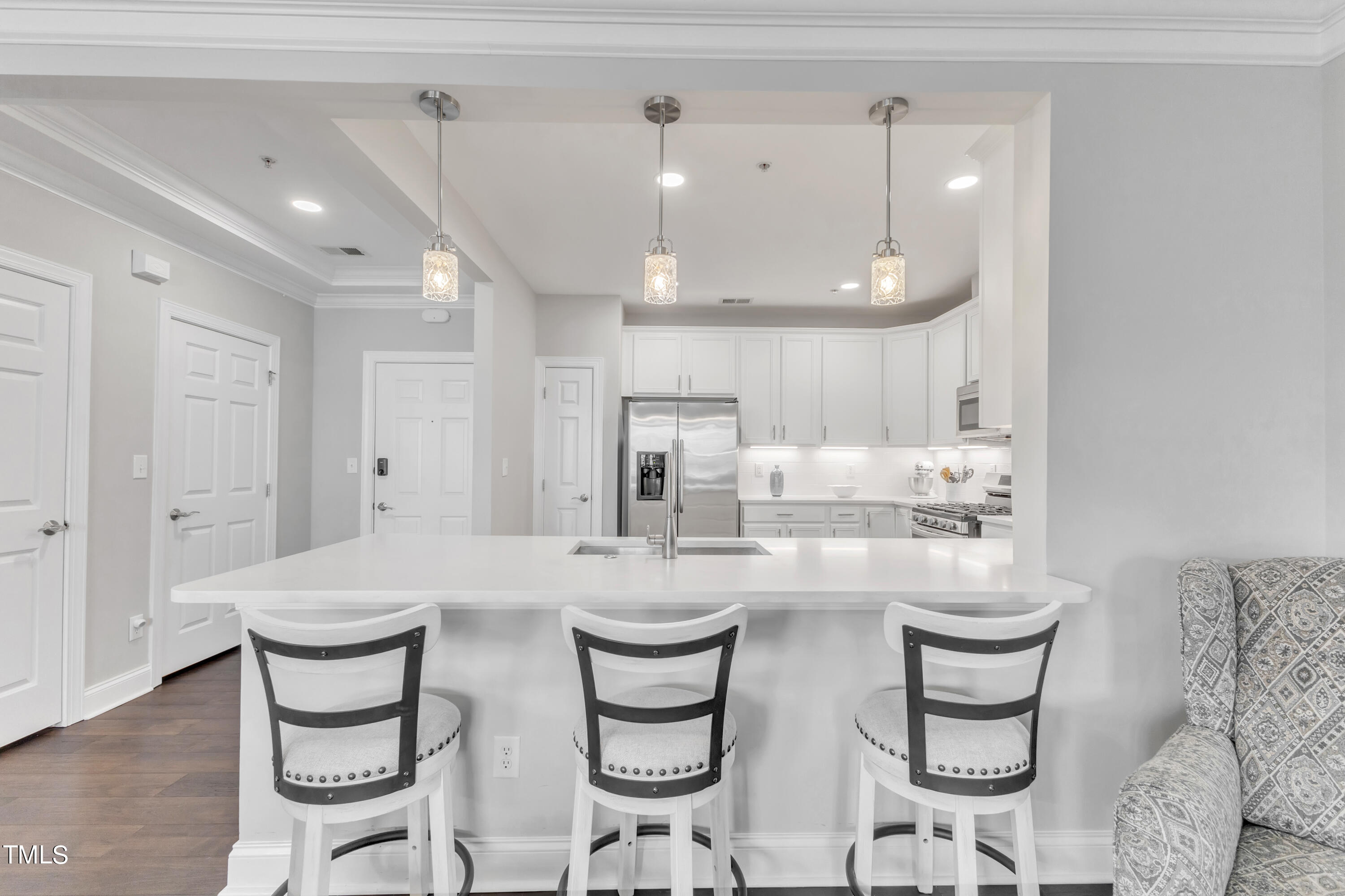 Seller willing to pay $2500 country club initiation fee with a reasonable offer. Enjoy a care-free, luxury lifestyle in this PRIME LOCATION at Brier Creek Country Club! This immaculate 2 Bedroom, 2 Bath Condo has been recently renovated and offers gorgeous white Quartz countertops, updated light fixtures, backsplash, appliances and more; see attached feature sheet for more details. Natural light beams in providing a light & airy atmosphere to this open floor plan fit for modern-day living. Includes 1 car attached garage accessible from inside the building. Everything you need is within close proximity; RDU, Target, Brier Creek Commons, restaurants & more! The neighborhood amenities with the Club Membership include fitness center, tennis & pickleball facilities, state-of-the art Swim Pavilion & dining facility. Golf Membership also available. Don't miss out on this one!