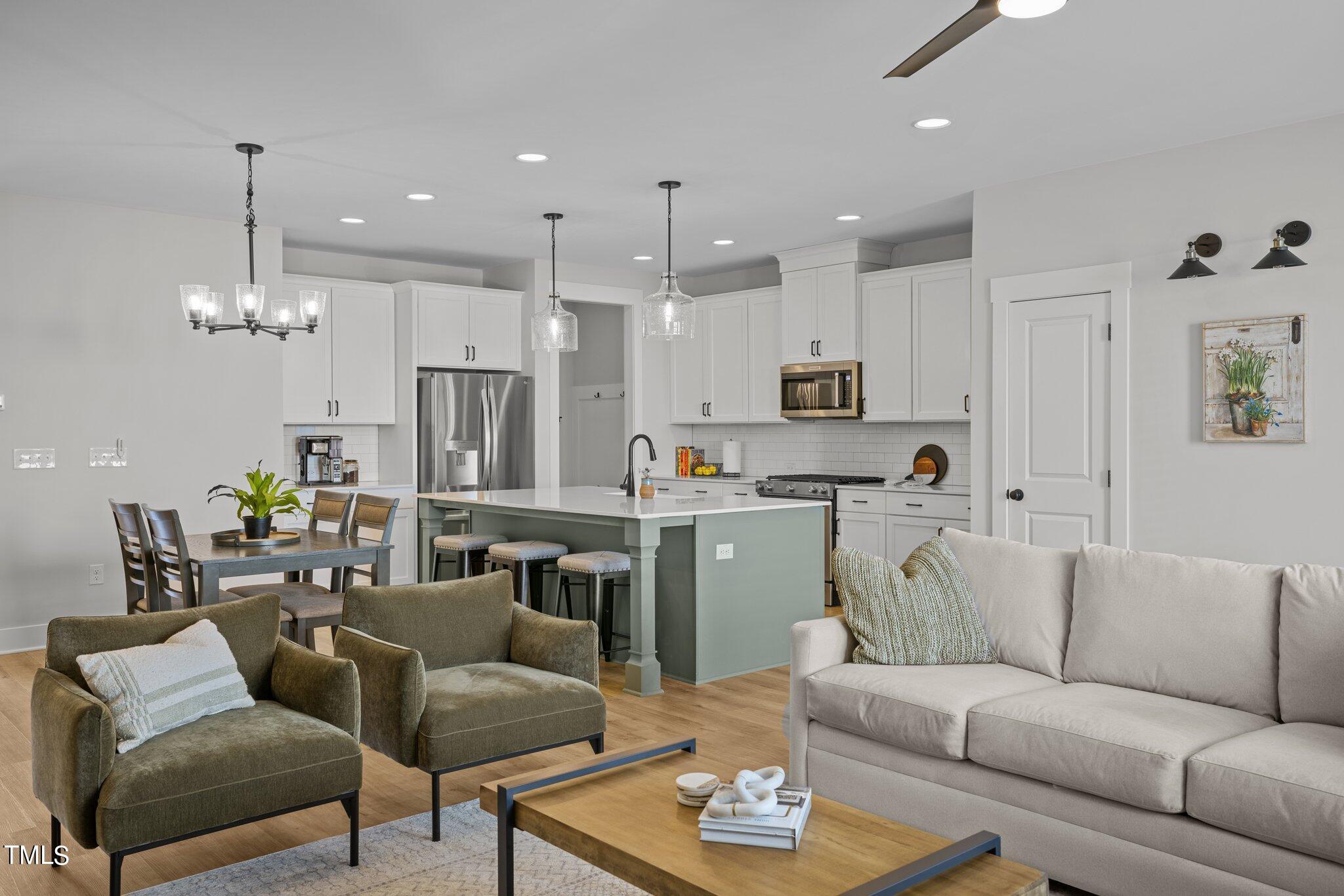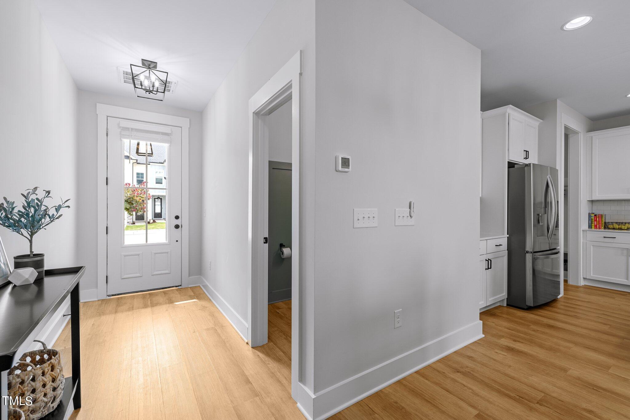 Prime location meets modern elegance! This contemporary, farmhouse-inspired townhome in Cary offers unparalleled convenience, just minutes from everything, including the premier shopping, dining, and entertainment of Fenton. With a spacious, open floor plan and numerous upgrades, this home is both luxurious and functional. The first floor, featuring luxury vinyl flooring, sets the tone for effortless entertaining and relaxation. The gourmet kitchen shines with an oversized island, farmhouse sink, gas cooktop, and stainless steel appliances. Upstairs, the generous primary suite includes a walk-in closet and a spa-like shower, complemented by secondary bedrooms, an additional bathroom, and a spacious laundry room. The expansive third level offers endless possibilities, whether you envision a theater room, gym, or creative space, with a walk-in unfinished attic for extra storage. Lovingly cared for and well-maintained, this home - just over two years old - is your opportunity to live in one of the Triangle's most sought-after zip codes. Don't miss out!